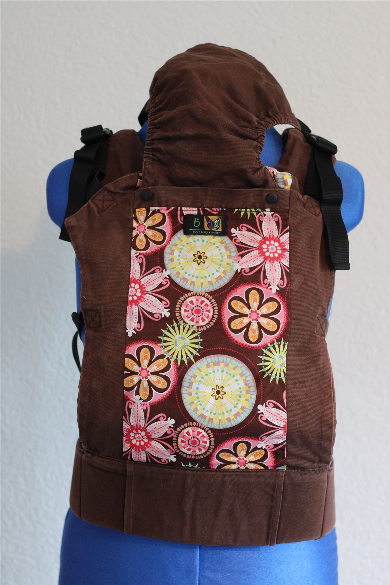 Typ: Full Buckle / Vollschnalle Tragehilfe, Gewichtsempfehlung: keine + beim Neugeborenen-Einsatz 3.5-7kg, Zustand: gebraucht, Mängel: kleinere Verfärbungen durch Gebrauch + Schnalle mit Kratzern, Farbe: braun mit Blumenmuster