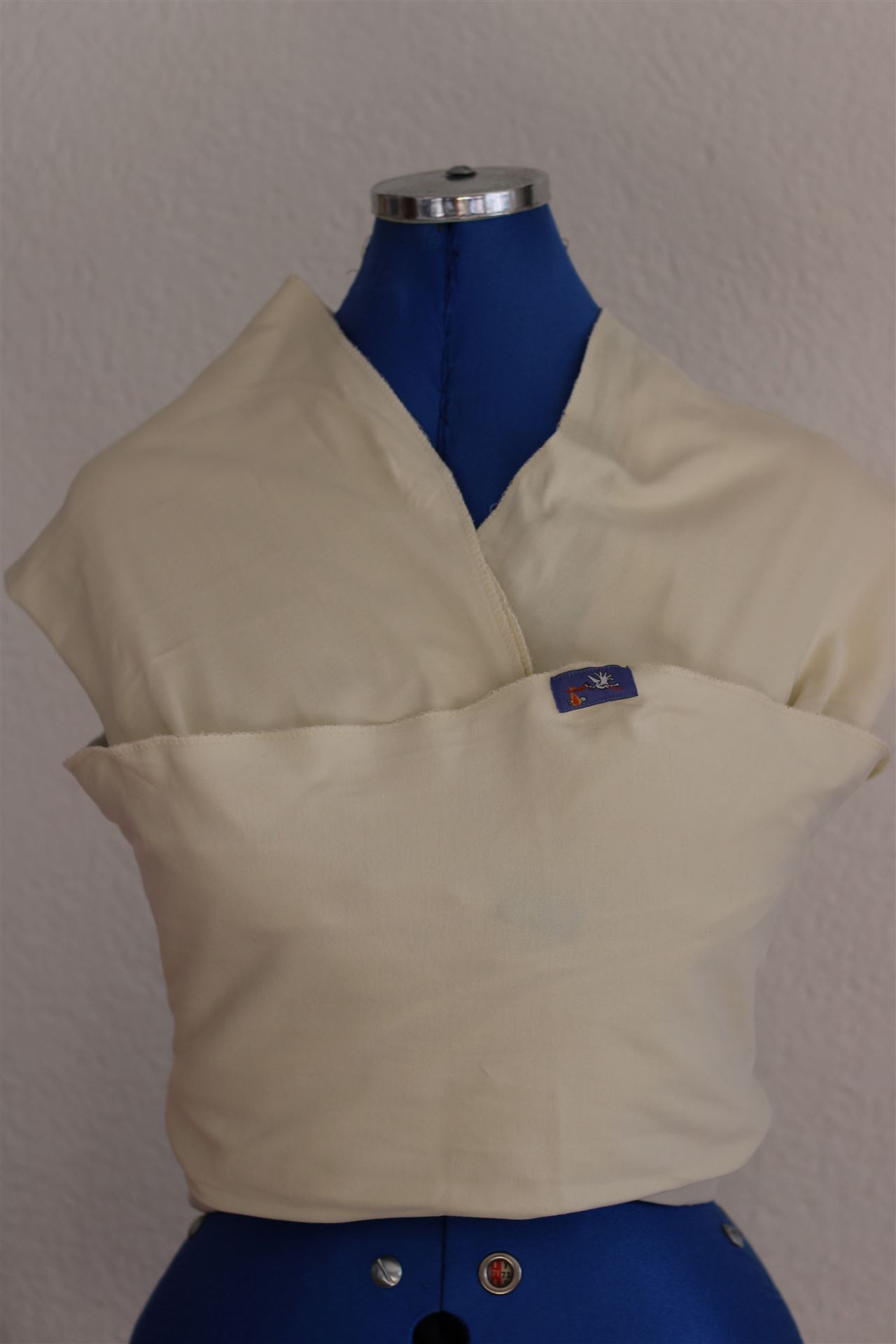 Typ: Elastisches Tragetuch, Grösse: ca. 4.7 m, Zustand: einwandfrei, Mängel: kleiner (eher undeutlicher) violetter Fleck, Farbe: weiss/creme