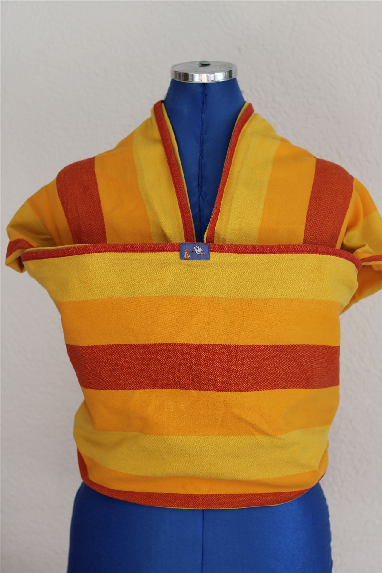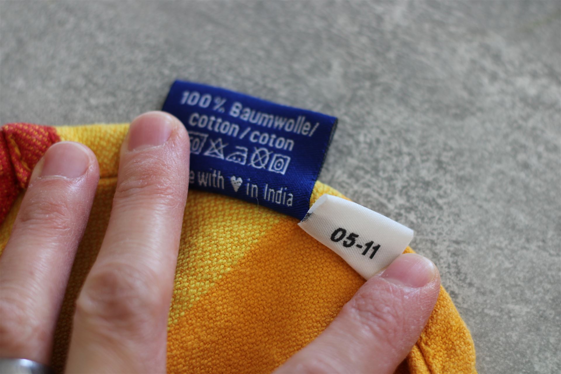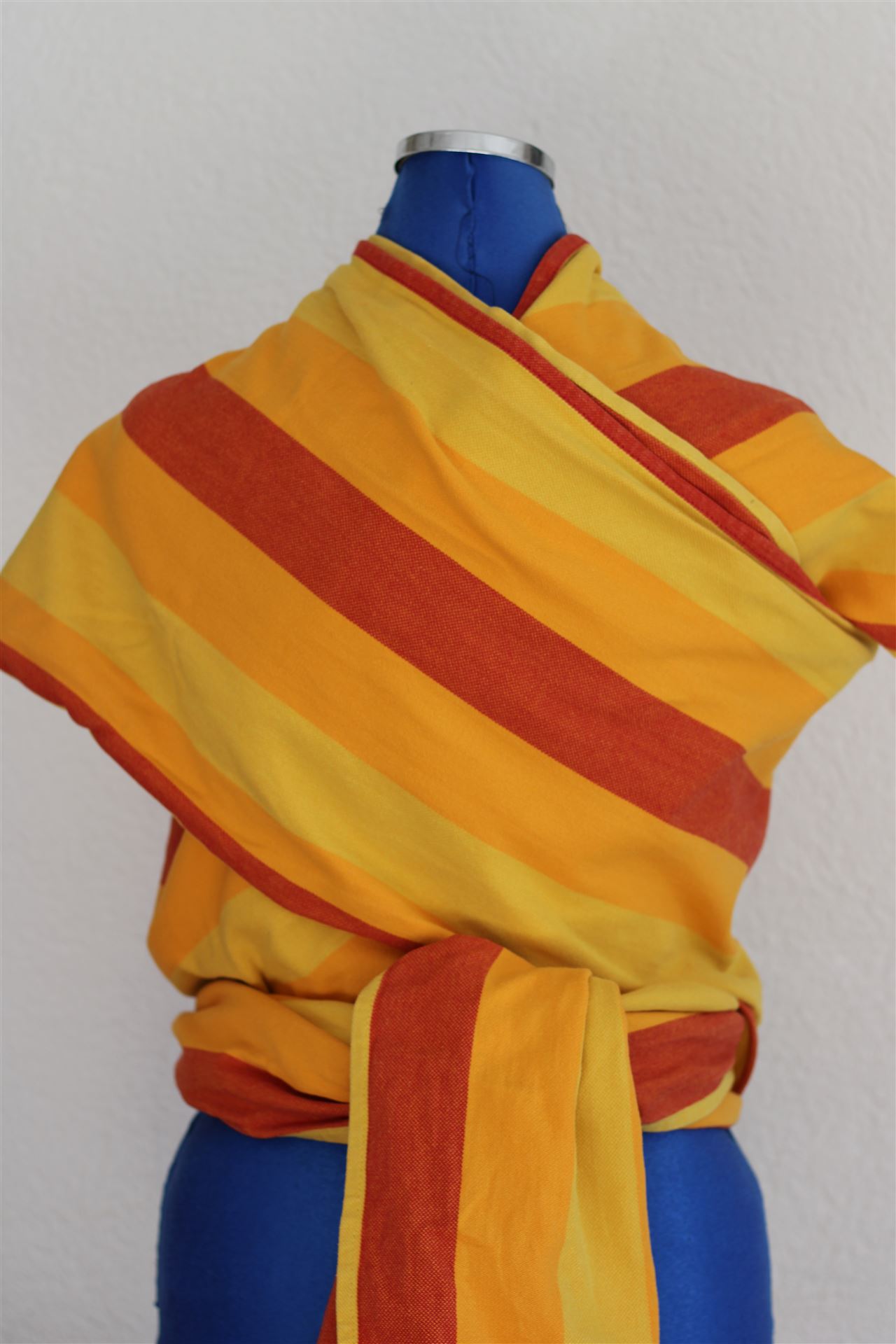 Typ: Nicht elastisches Tragetuch, Grösse: 4.60 x 0.70 m, Zustand: sehr gut, Mängel: keine, Farbe: gelb / orange / rot
