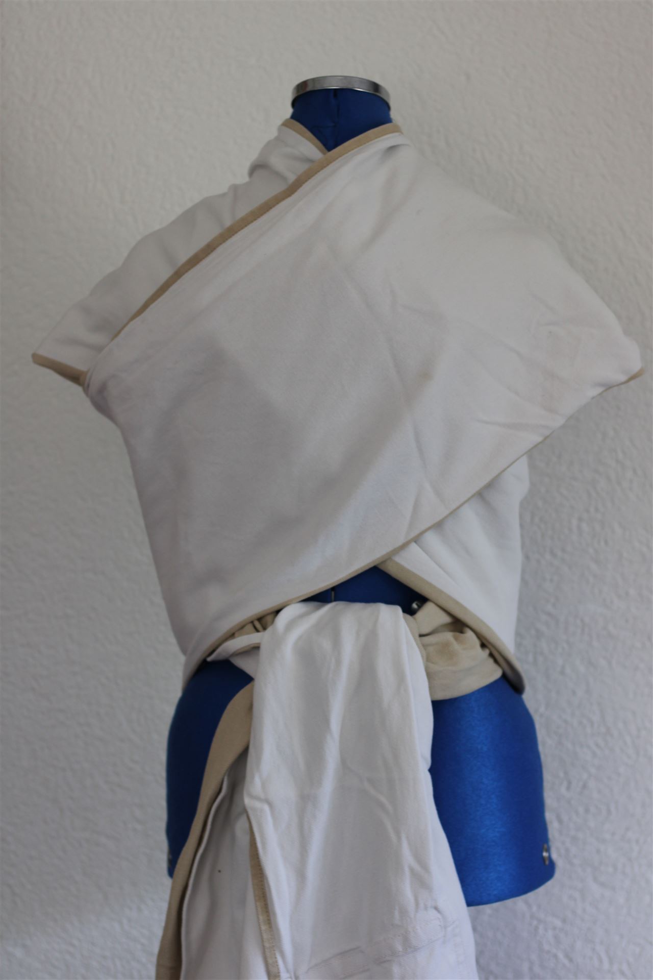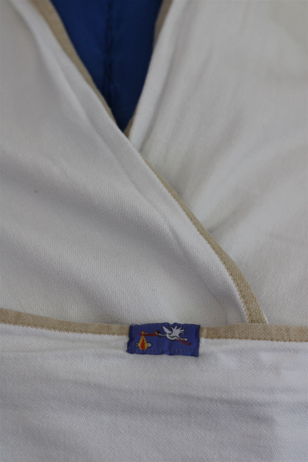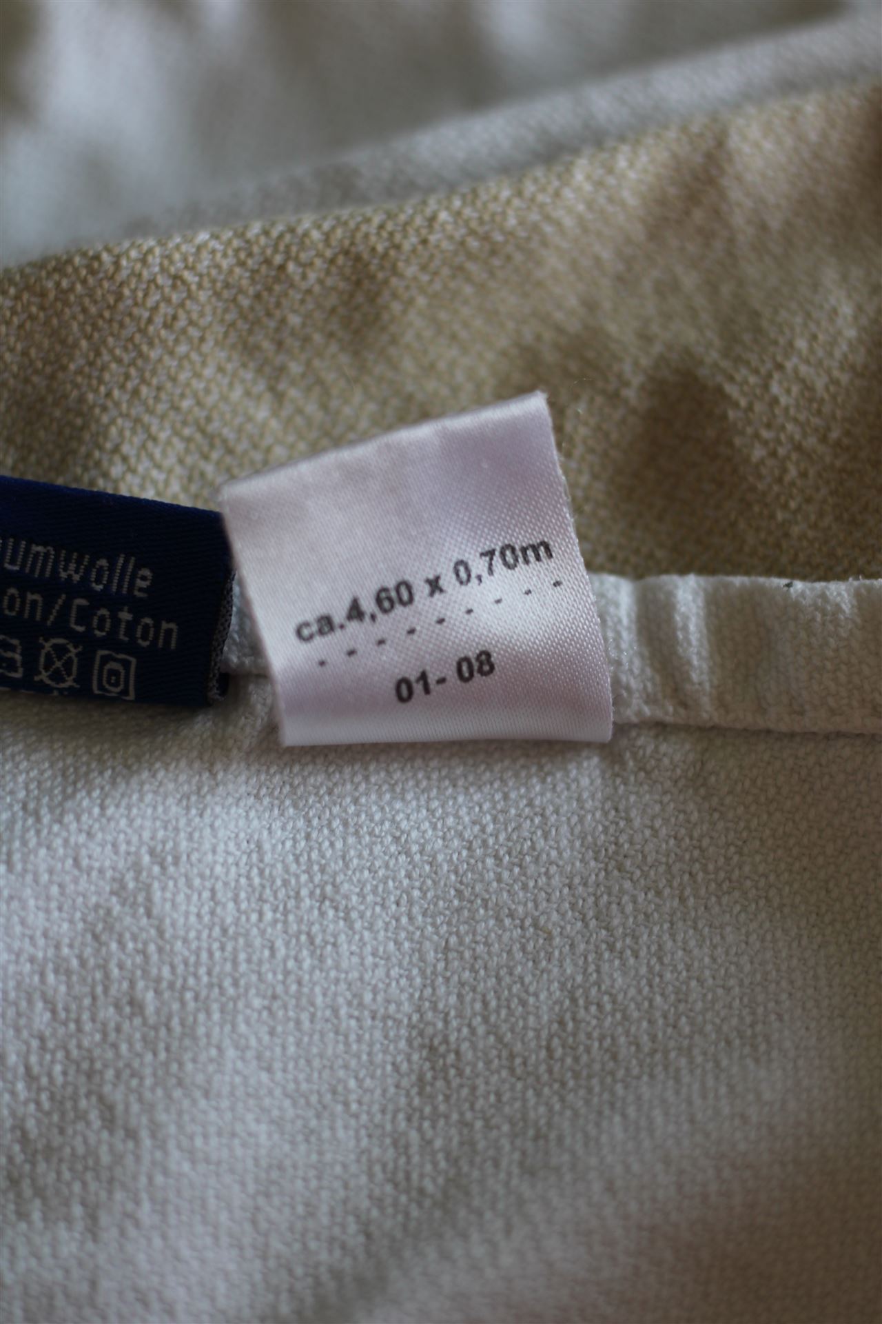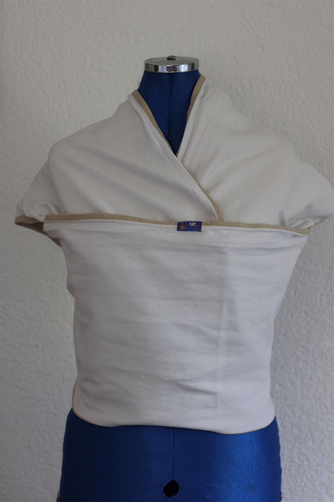 Typ: Nicht elastisches Tragetuch, Grösse: 4.60 x 0.70 m, Zustand: sehr gut, Mängel: kleiner Mangel (kaum sichtbar und nur schwer zu fotografieren) ist auf den letzten zwei Fotos ersichtlich, Farbe: weiss / beige